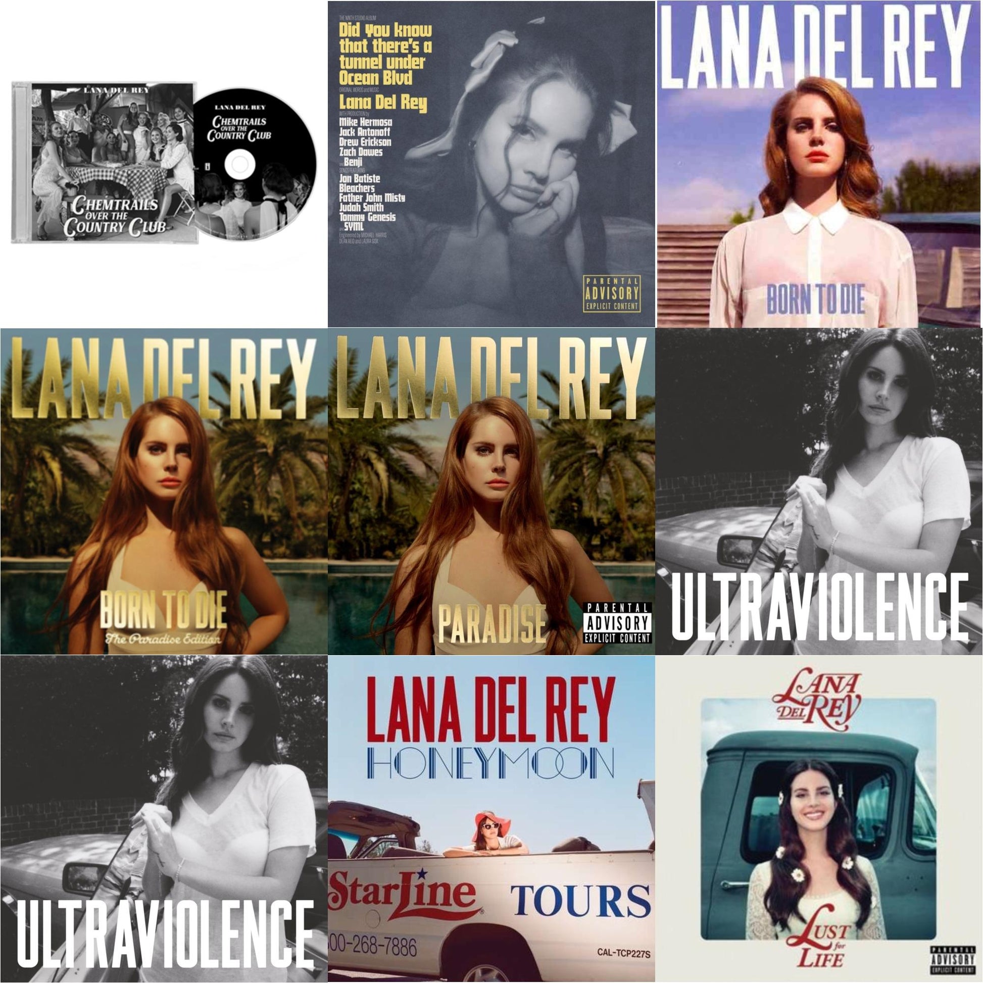 Chemtrails Over The Country Club & Did You Know That There’S A Tunnel Under Ocean Blvd (X) & Born To Die & Born To Die (Paradise Edition) & Paradise & Ultraviolence & Ultraviolence & Honeymoon & Lust For Life